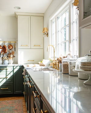 Our fixtures feature an unlacquered brass finish that naturally develops a warm patina as it interacts with water, air, and everyday use. This living finish adds character and depth, making every piece uniquely yours.