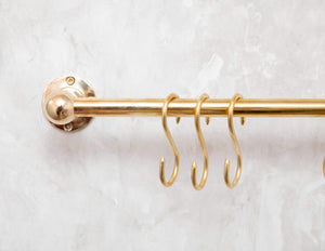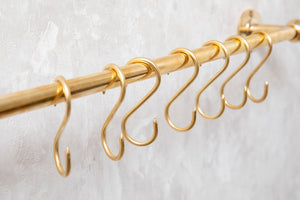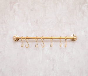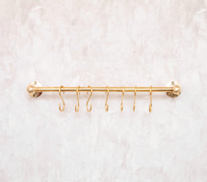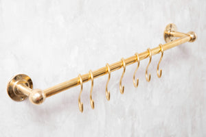 Solid Brass Pot Rail With Hooks, Unlacquered Brass Kitchen Pot Rack, Pot Hangers