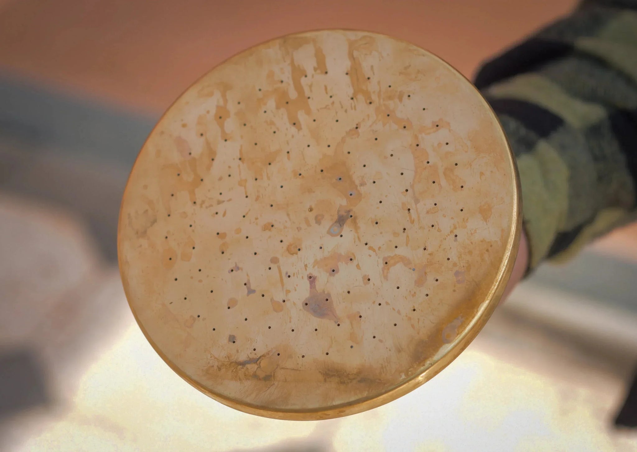 Finished in unlacquered copper, the shower head arrives beautifully polished and naturally evolves over time, developing a rich, one-of-a-kind patina that enhances its character.