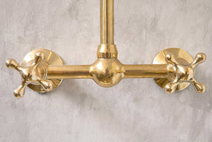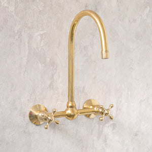 Unlacquered Wall Mounted Brass Gooseneck Faucet for Bathroom and Kitchen